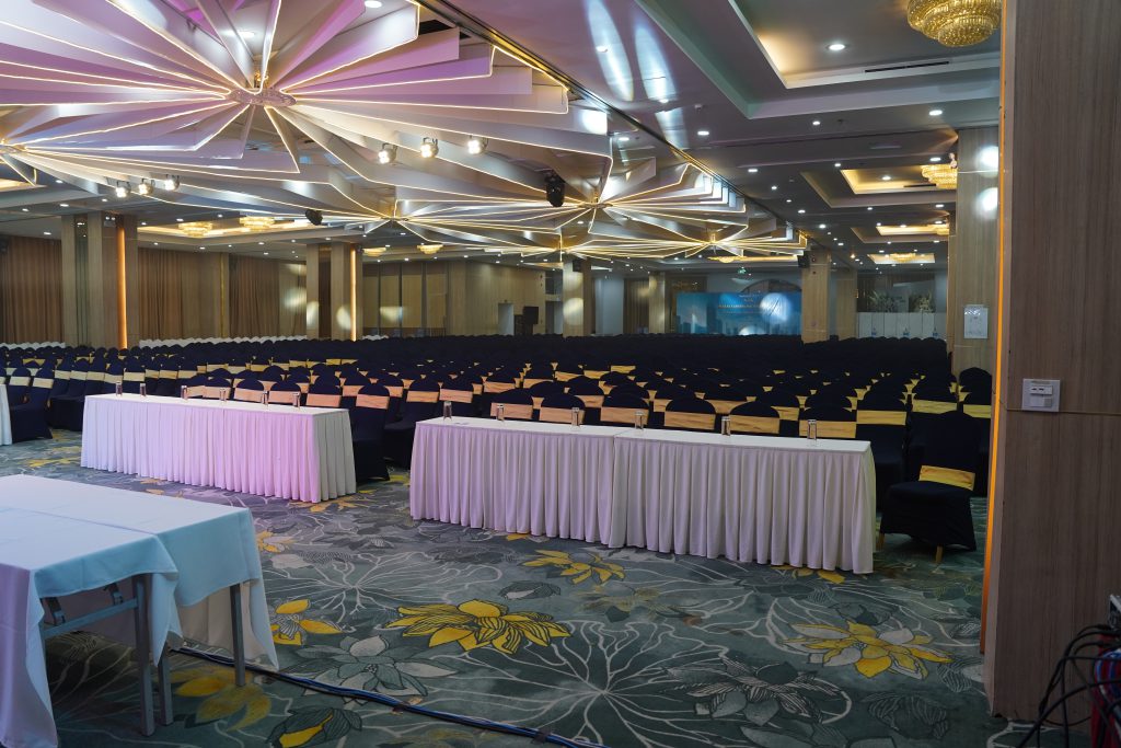 Tại CTM Palace 131 Nguyễn Phong Sắc, các phòng tiệc từ tầng 1 đến tầng 4 đều có thể linh hoạt setup hội nghị với sức chứa từ 400 đến 800 khách, đáp ứng tốt các chương trình quy mô lớn.